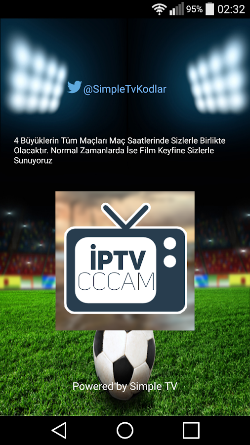 Rtmp Adreslerini Manuel Girmenize Gerek Yok Artık. Üstelik Bedava Ve 7/24 Sizinle. Simple Tv Uygulasını Çok Seveceksiniz. Simple TV ile Artık Hiçbir Maçı Kaçırmayacak, HD Olarak İzleyeceksiniz. Türkiye de Ve Avrupa'da Spor Karşılaşmalarını Takip Edemiyor Musunuz? O Zaman Simple TV Tam Sizlere Göre.!